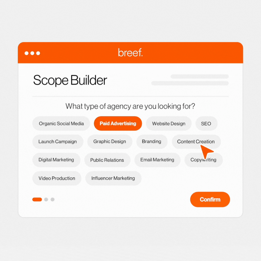 Breef is the leading platform to help brands find the right agency, fast. Through a curated, tech-enabled and human-guided process, brands and marketers use Breef to connect with the right agencies — saving time, reducing friction and enabling teams to focus on impact.